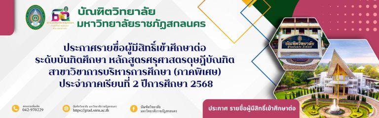 ประกาศรายชื่อผู้มีสิทธิ์เข้าศึกษาต่อ ระดับบันฑิตศึกษา หลักสูตรศรุศาสตรดุษฏีบัณฑิต สาขาวิชาการบริหารการศึกษา (ภาคพิเศษ) ประจำภาคเรียนที่ 2 ปีการศึกษา 2568admin