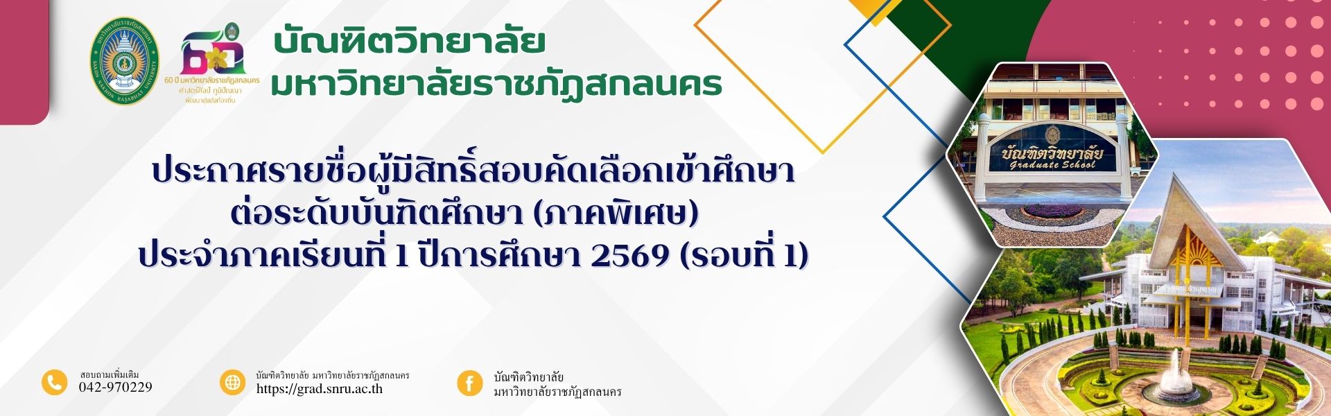 รายชื่อผู้มีสิทธิ์เข้าศึกษาต่อ ระดับบันฑิตศึกษา ประจำภาคเรียนที่ 1 ปีการศึกษา 2569 (รอบที่ 1)